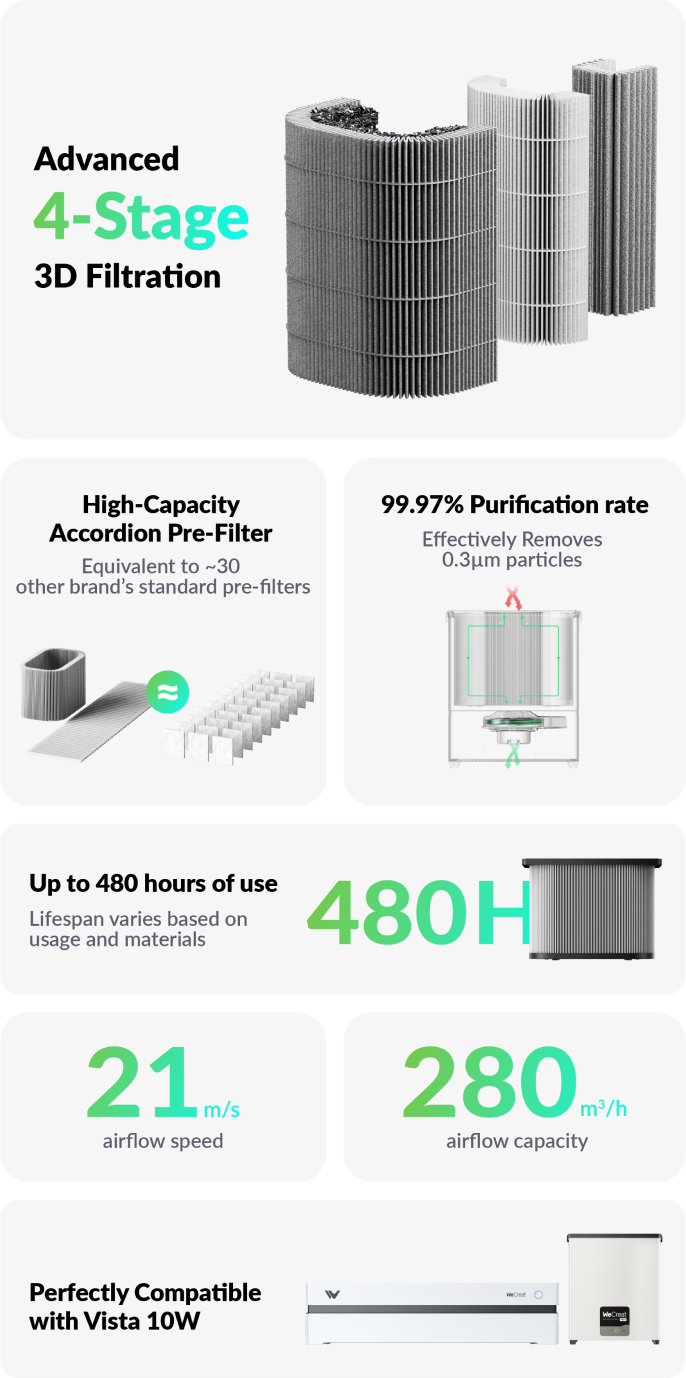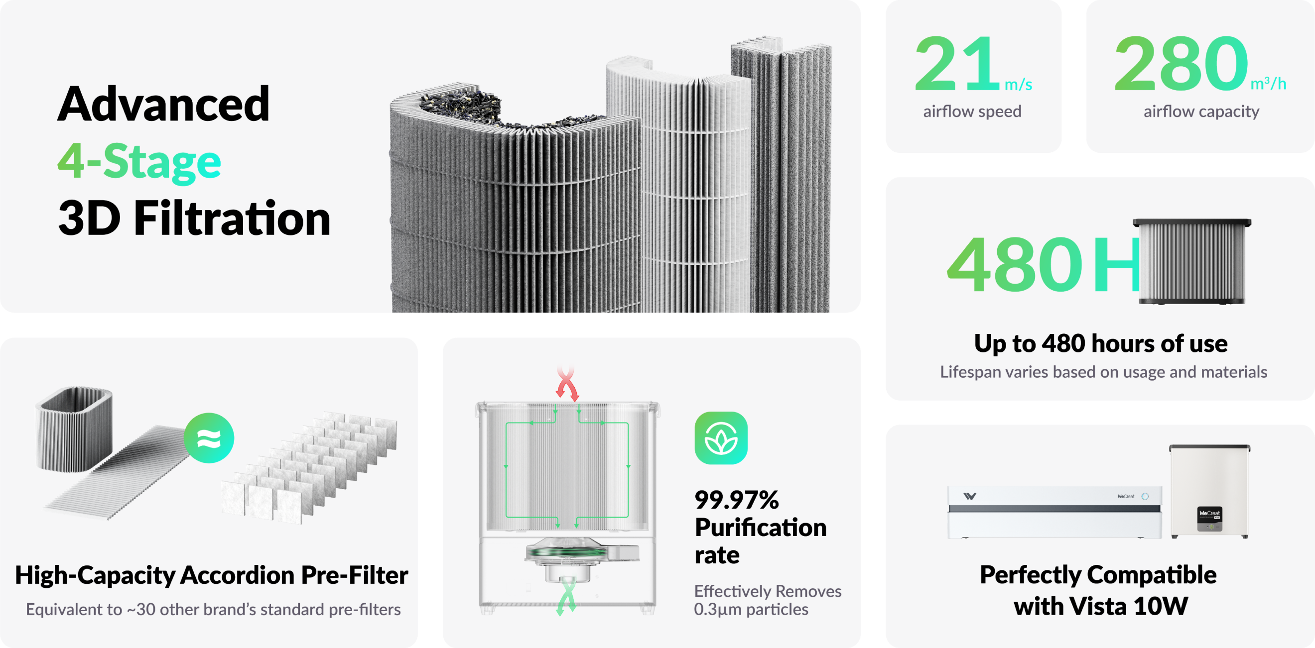Medium Efficiency & True HEPA Filter (99.97% @ 0.3µm)