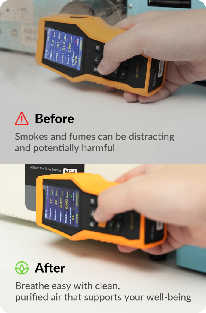 *The AirGuard Mini’s filter lifespan varies depending on the air quality of the environment and the materials used in the laser cutting and engraving process.