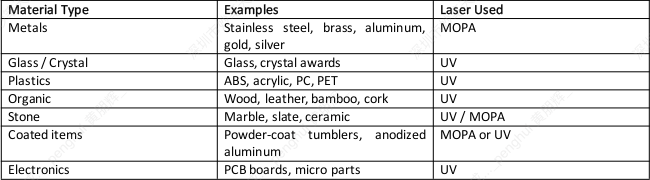 7. What materials can WeCreat Lumos Ultra 6W UV + 60W/100W MOPA laser engrave?