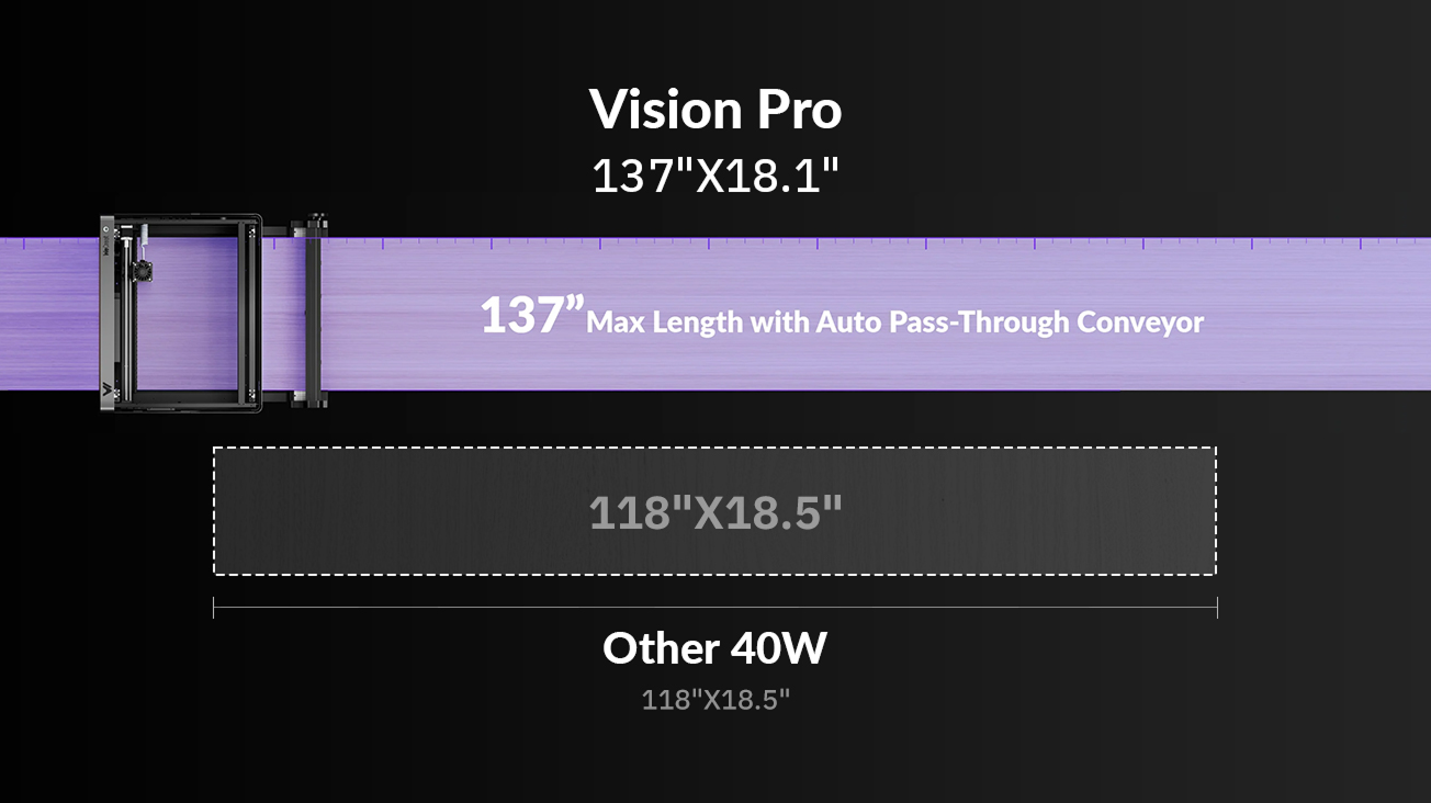 Take on oversized projects or streamline batch production with ease. With Vision Pro’s expanded working area, you’ll have the space and efficiency to bring creation to life.