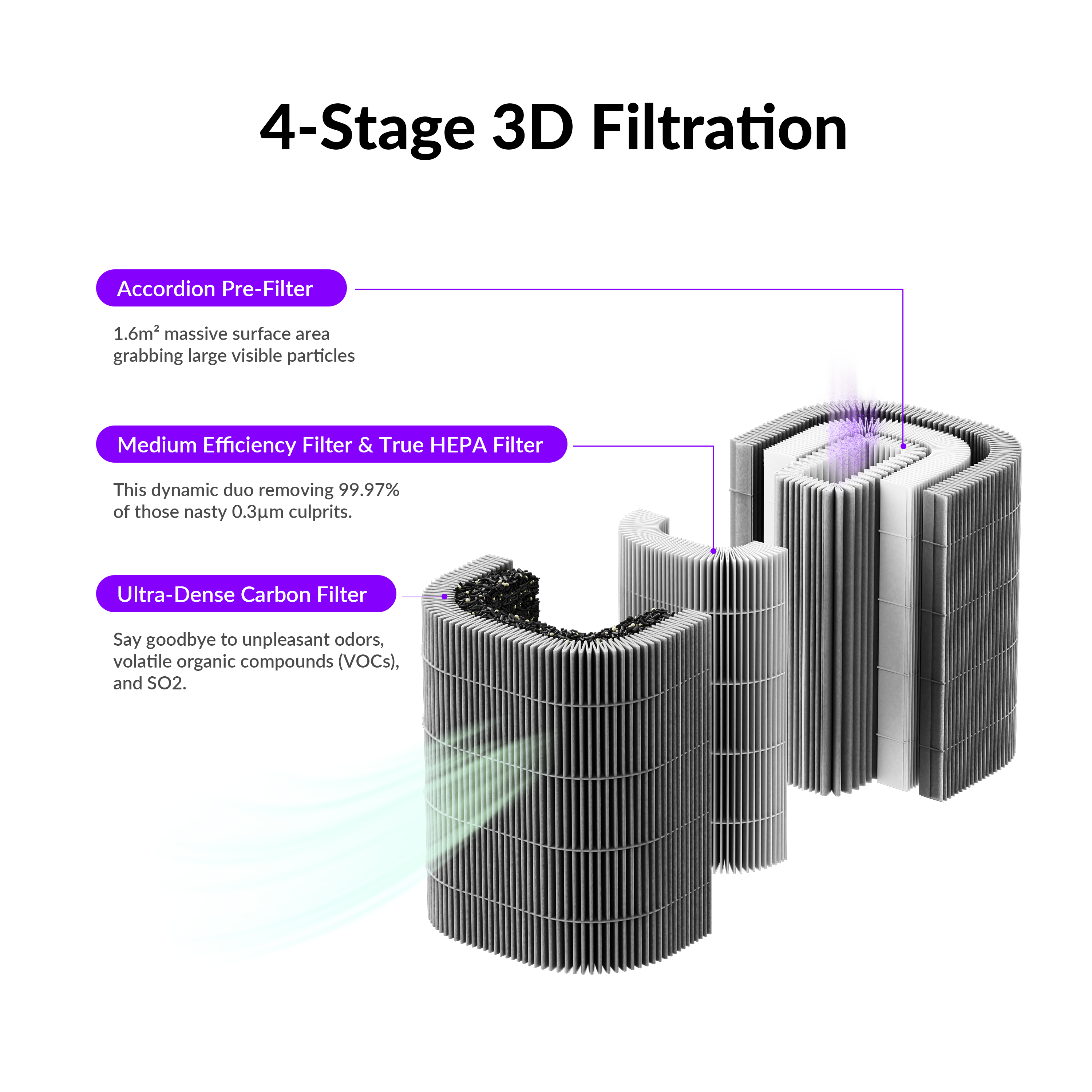 This filter neutralizes unpleasant odors and harmful fumes, creating a