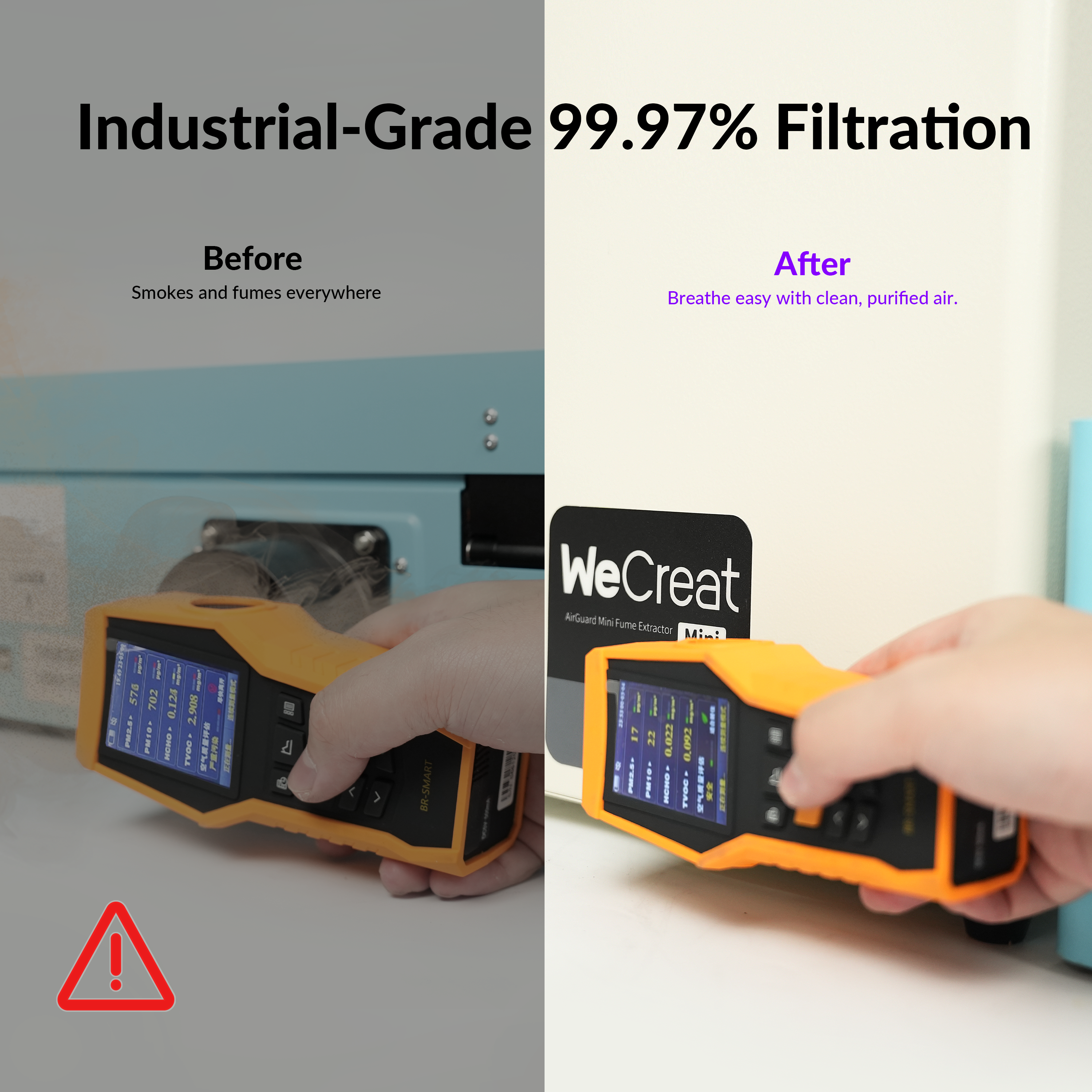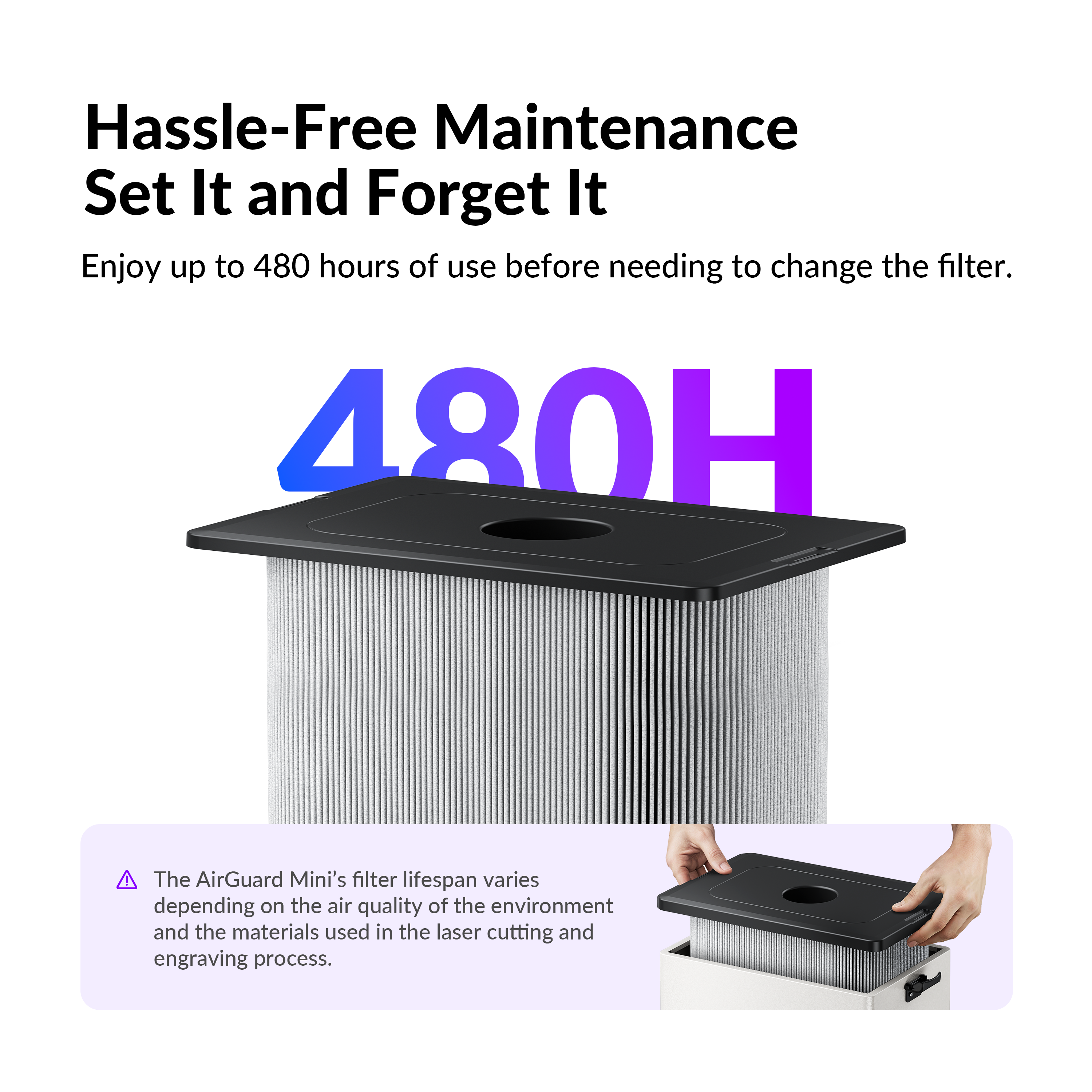 *The AirGuard Mini’s filter lifespan varies depending on the air quality of the environment and the materials used in the laser cutting and engraving process.