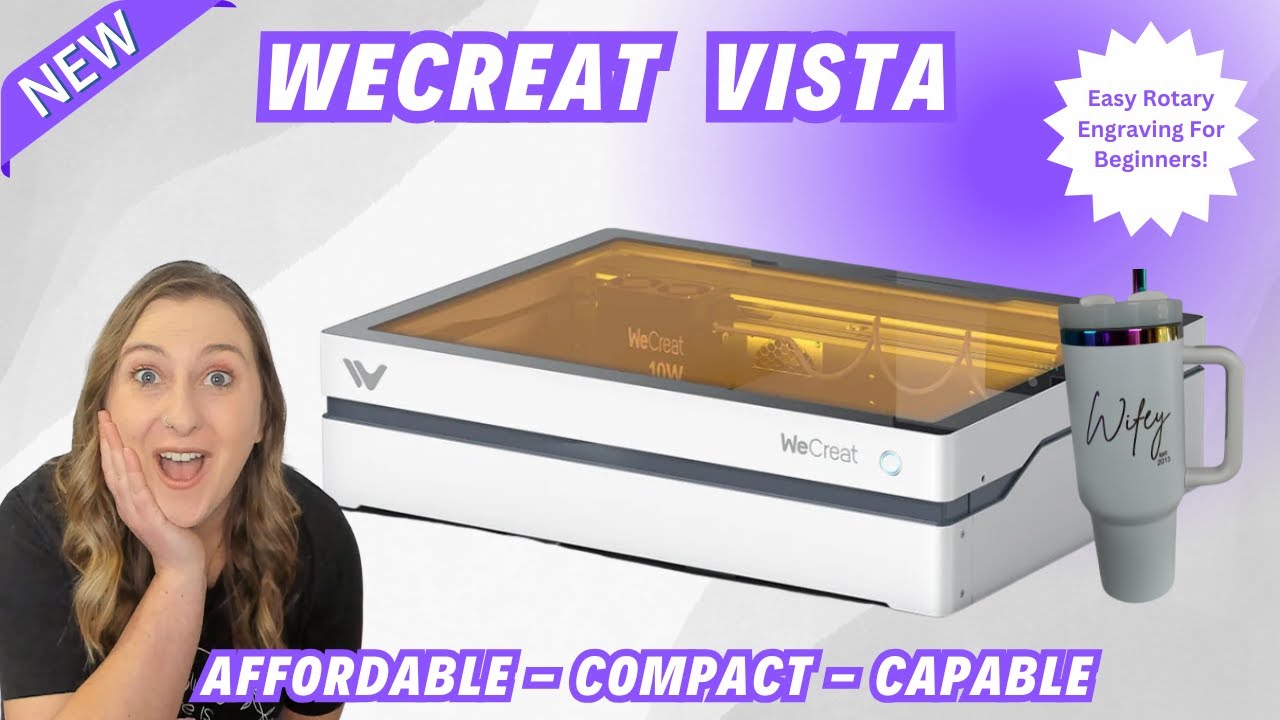 - Easiest Rotary: Vista's patented 90° FlipLaser design makes it the smallest enclosed laser capable of 40oz Stanley tumbler engraving.