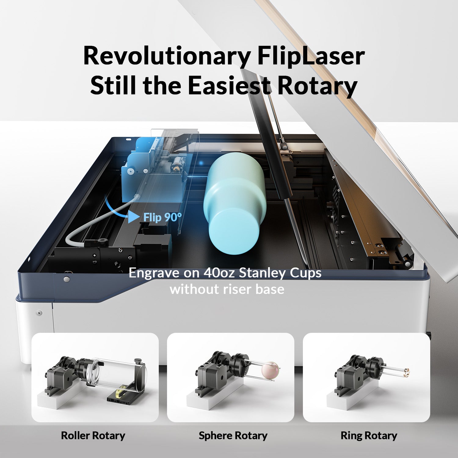 - Easiest Rotary: Vista's patented 90° FlipLaser design makes it the smallest enclosed laser capable of 40oz Stanley tumbler engraving.