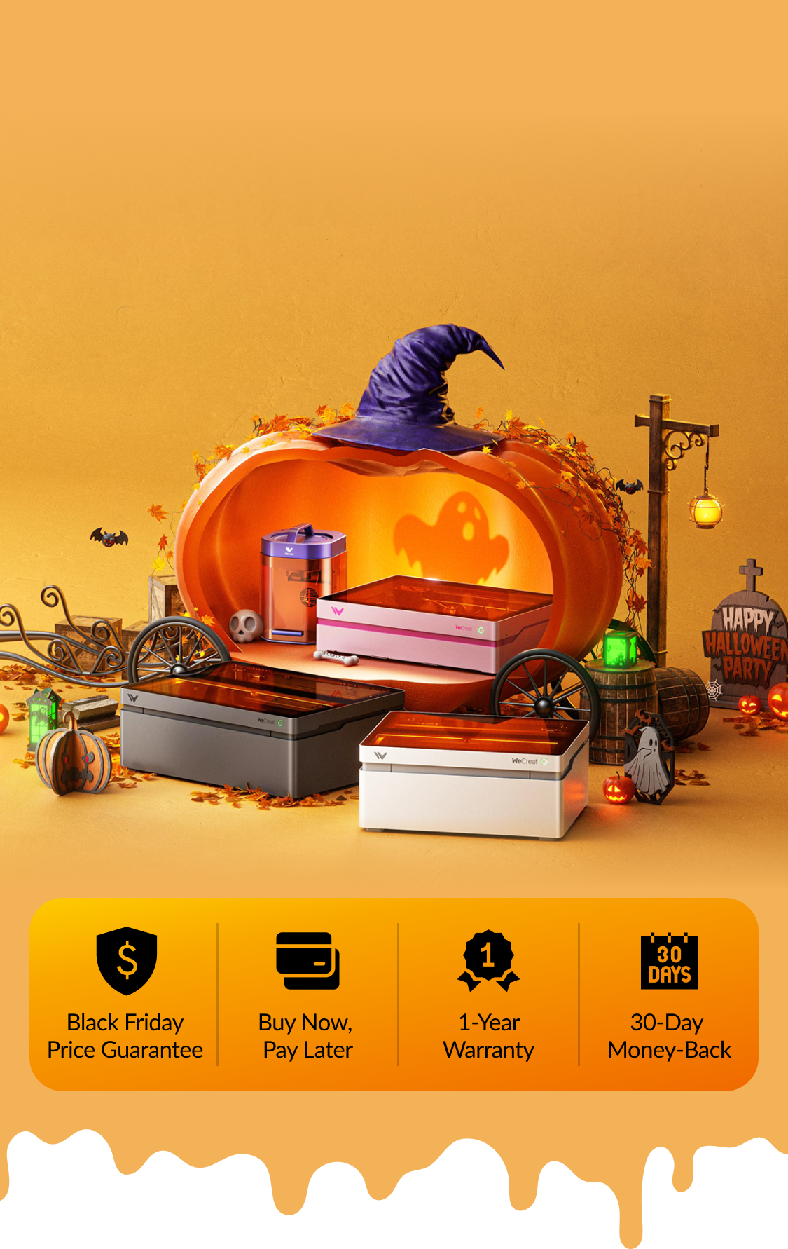 1. Promotional Period:The WeCreat Halloween Sale starts on September 30, 2025, and ends on October 31, 2025.
