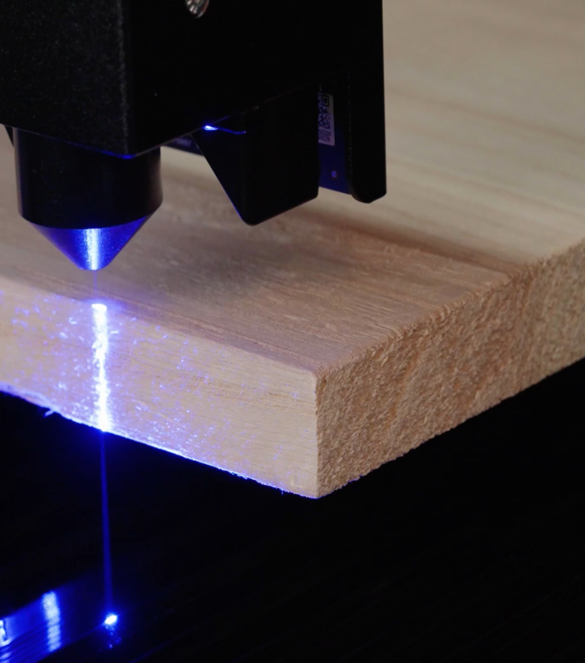 Supercharged with BeamFocus Technology™, our 45W diode laser delivers rapid cuts through thick materials while maintaining smooth finishes. The advanced blue laser effortlessly engraves and cuts popular materials like wood, metal, glass, leather, and opaque acrylics. With its expansive work area and bed, this machine transforms your workspace into a compact factory.