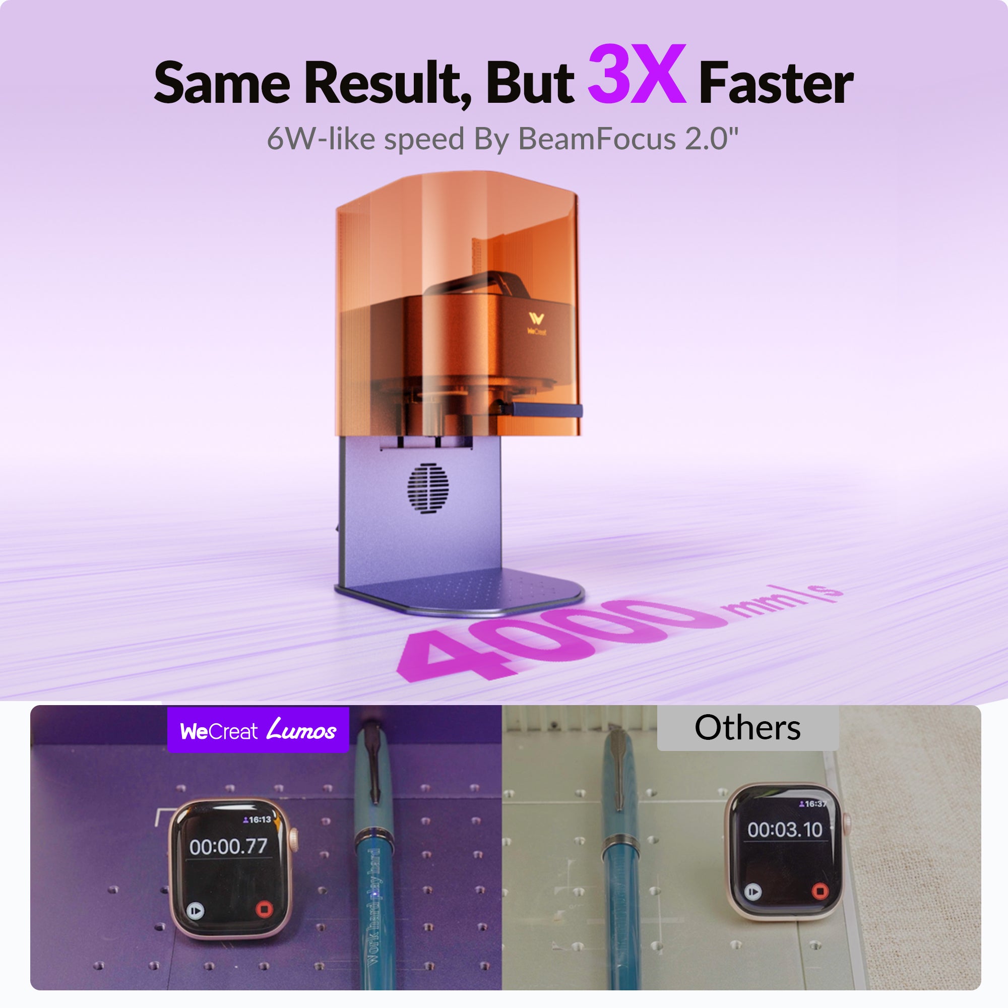 - Engrave 3× faster, 6W-Level Speed,powered by BeamFocus 2.0.