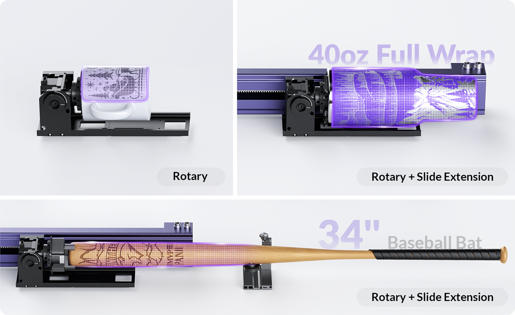 The world's 1st rotary + slide extension combo makes engraving any cylindrical project seamless and confident.
