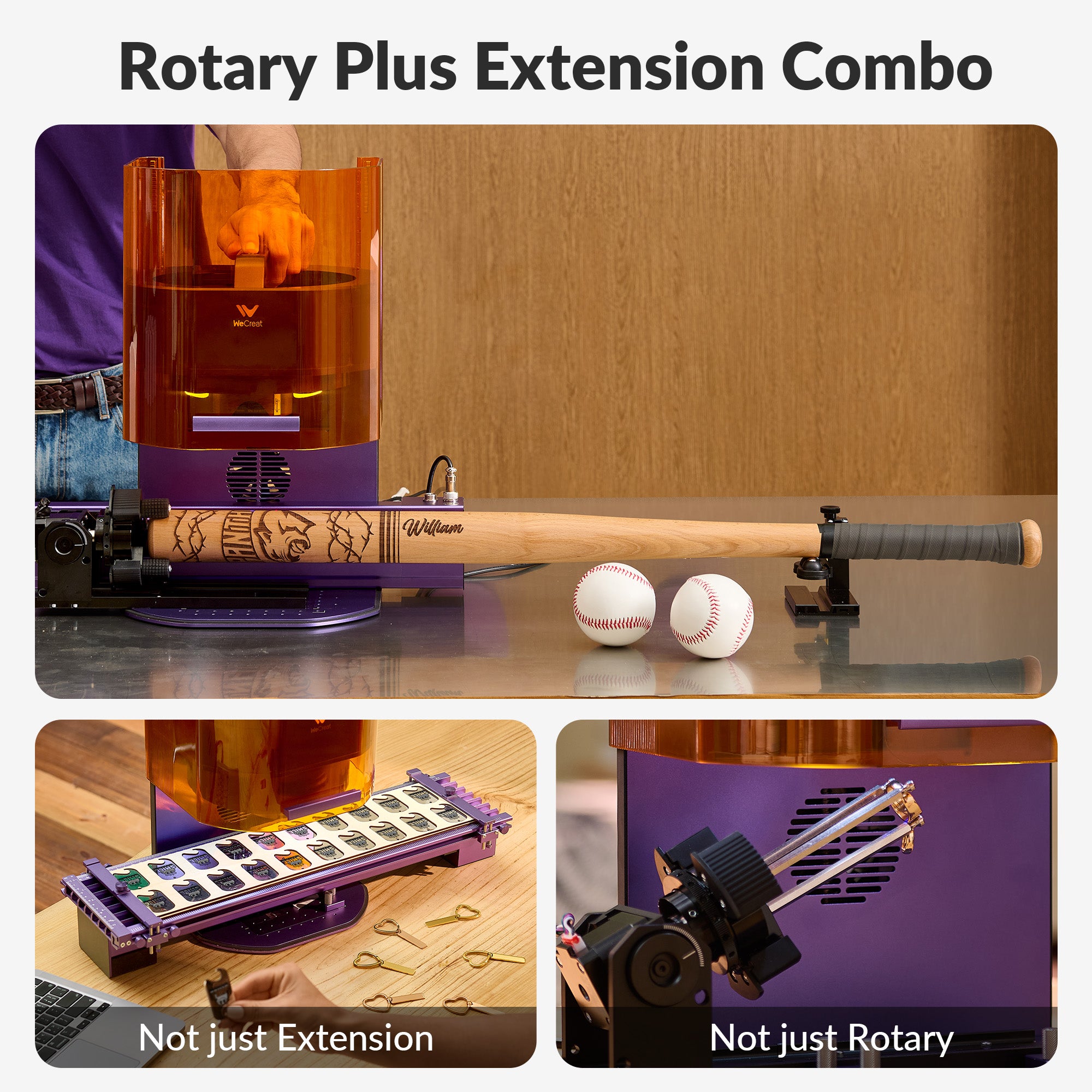 Engrave long cylindrical items—like even 34 inches baseball bats, dowels, or rods. Industrial-grade capability without industrial-sized machines.