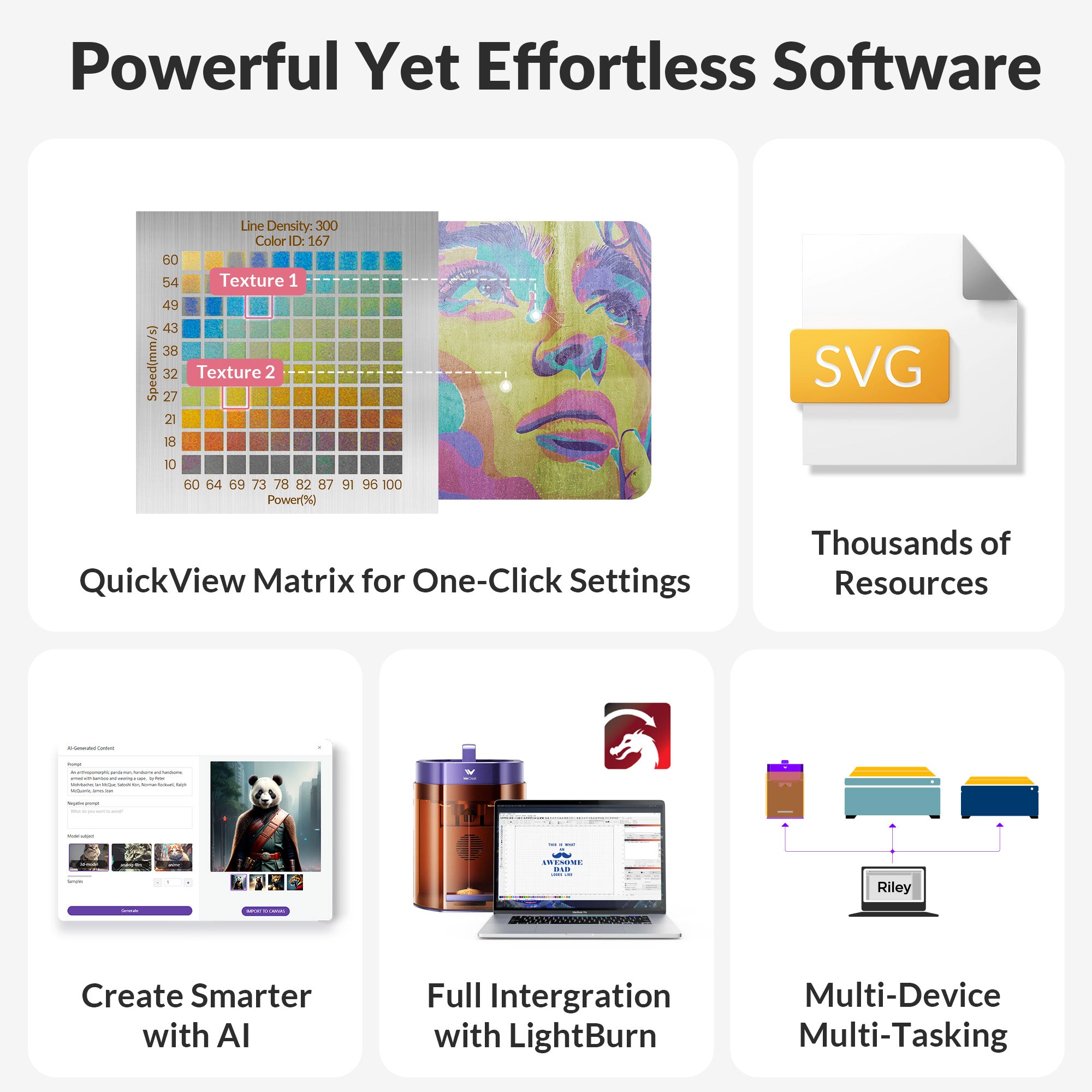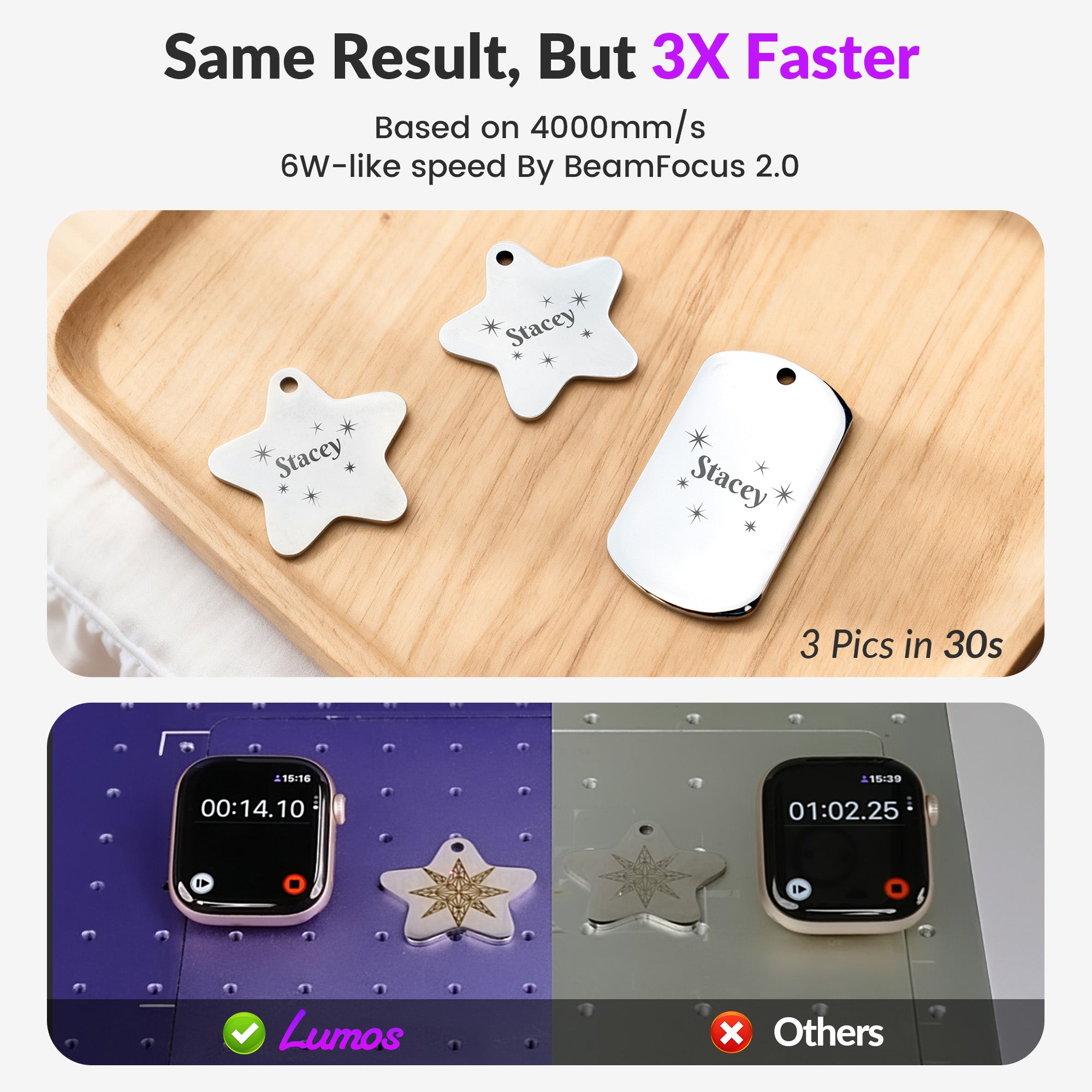 • Engrave 3× faster, 6W-Level Speed,powered by BeamFocus 2.0.