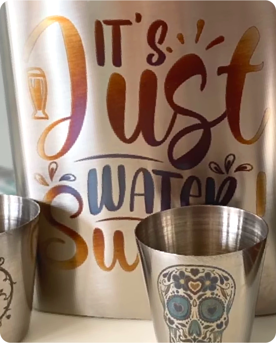 Engrave cylinders, spheres, tapered objects like martini glasses, 40oz tumblers, and ring interiors with confidence—no risers needed.