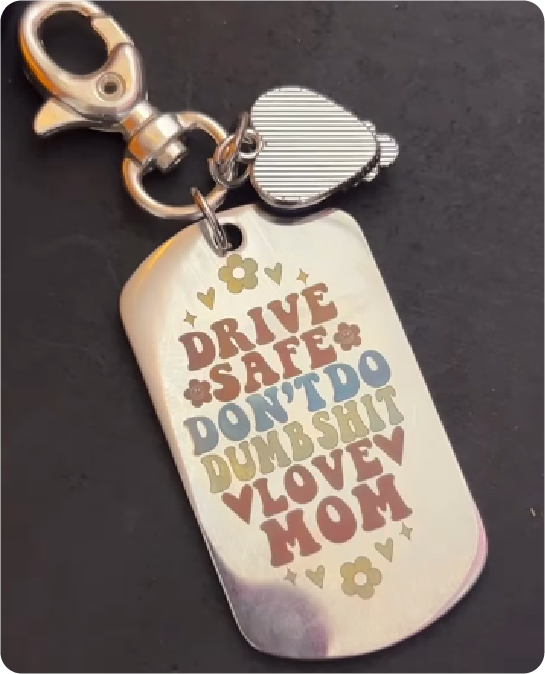 Jewelry personalization, delicate engraving on medal or plastic/colored acrylics