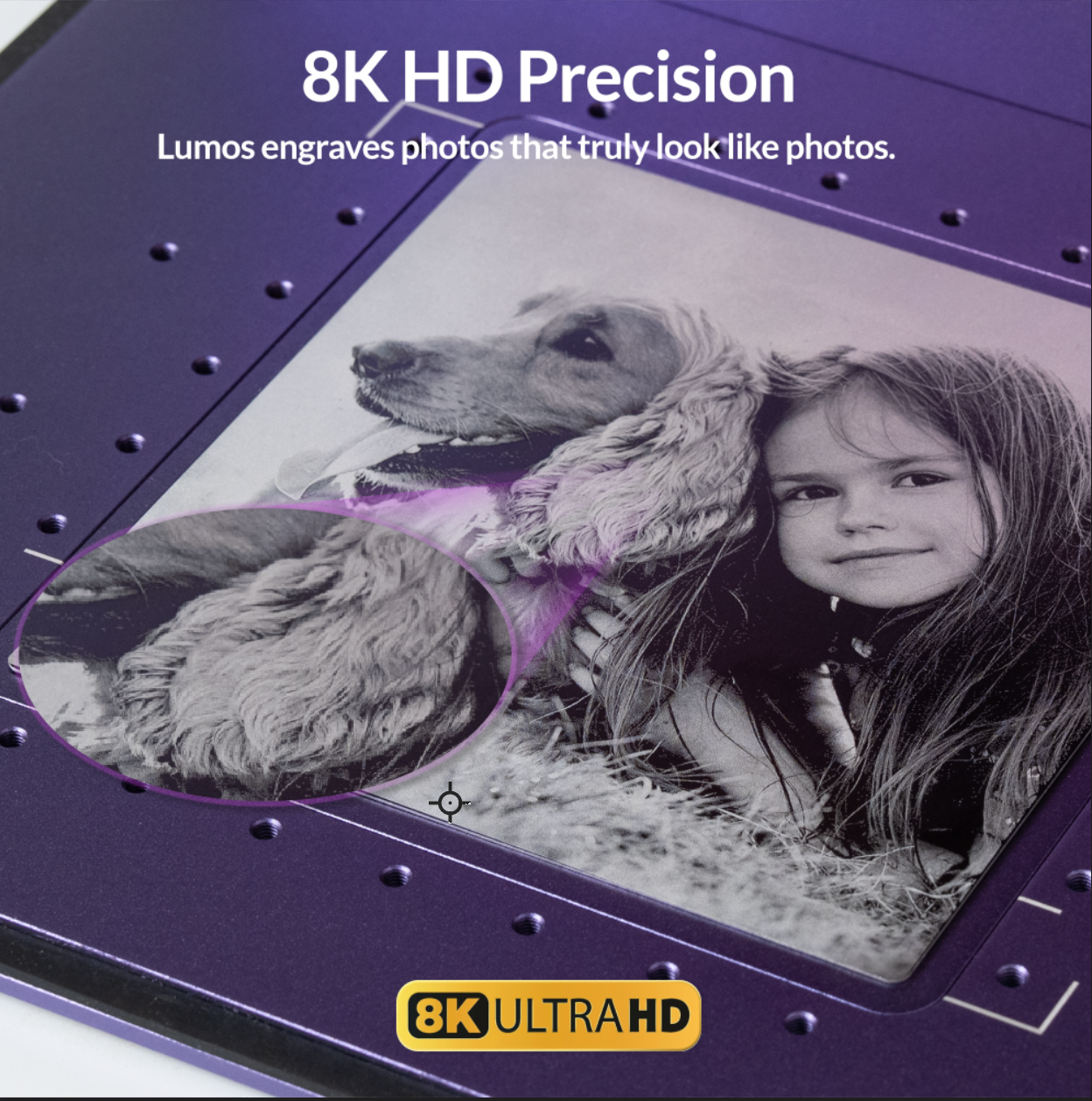 Sharper fur, brighter highlights, richer shadows. With 8K resolution, Lumos engraves photos that truly look like photos. So lifelike, they’ll make you do a double take.