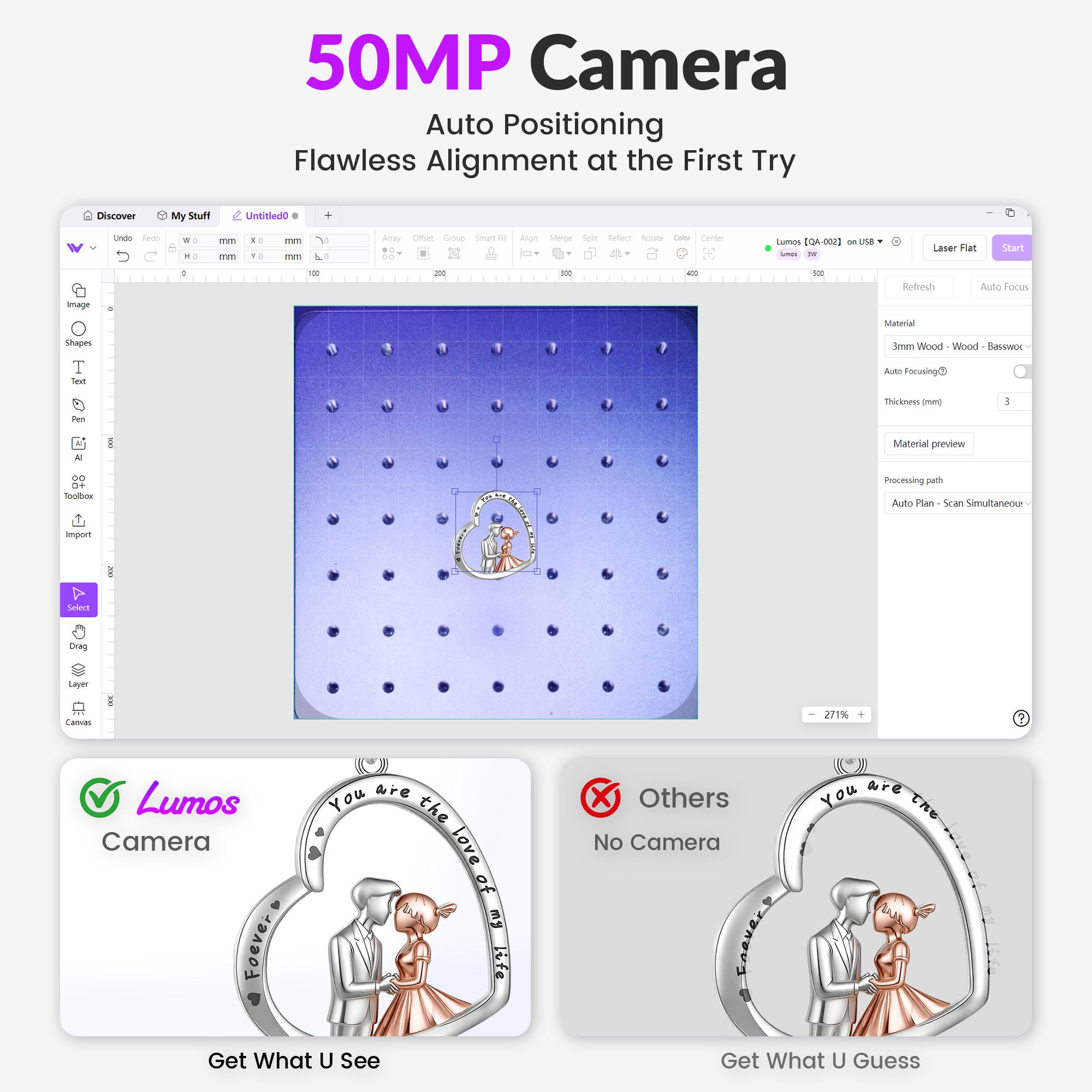 Capture. Align. Create. Powered by a built-in 50MP HD camera and 8K precision, Lumos ensures flawless results — what you capture is what you make.