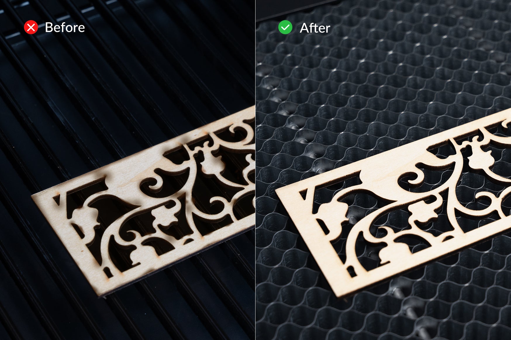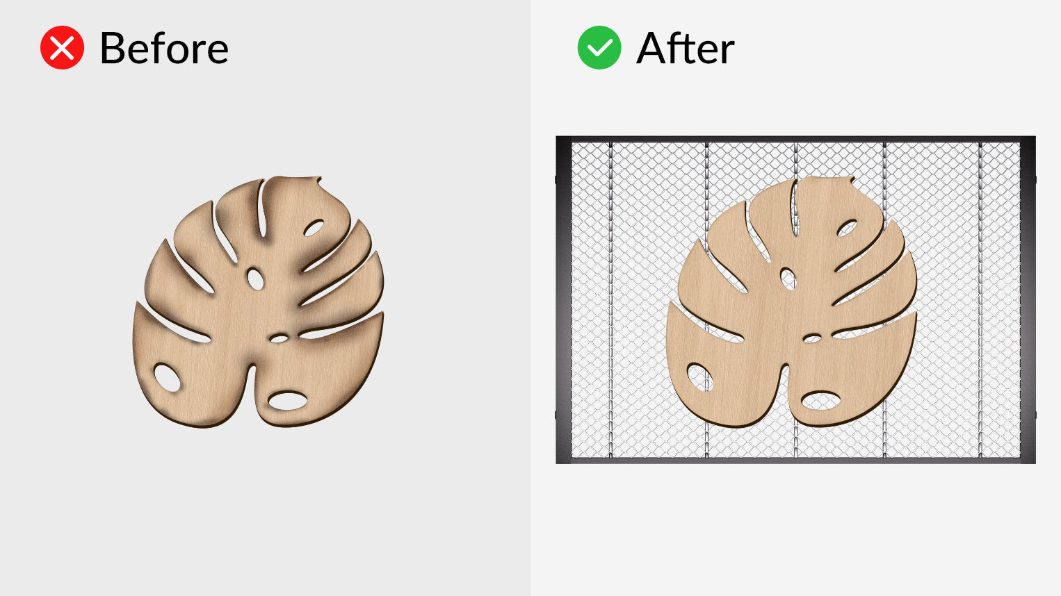 With its 9.5mm fine honeycomb grid, the panel is optimized for engraving and cutting delicate, tiny pieces—holding them firmly in place without shifting or dropping.