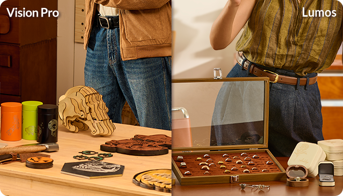 Vision Pro delivers buttery-smooth cuts through thick materials with deep artistic engravings. Lumos adds 8K fine details and MOPA-style metal color engraving, elevating your product value.