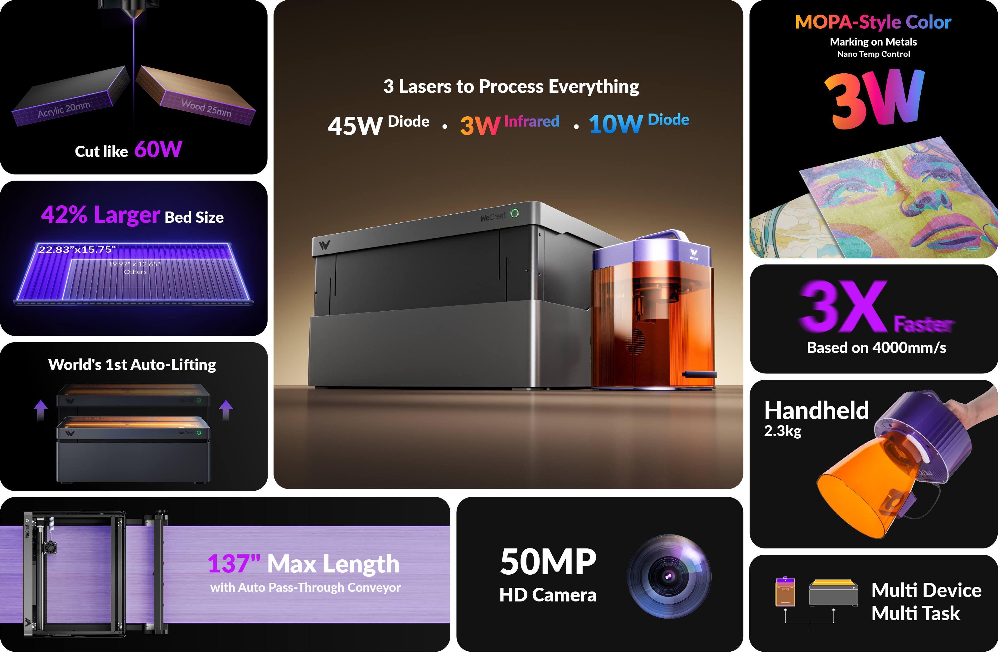 • Lumos 3W IR & 10W Diode Portable Dual Laser Engraver