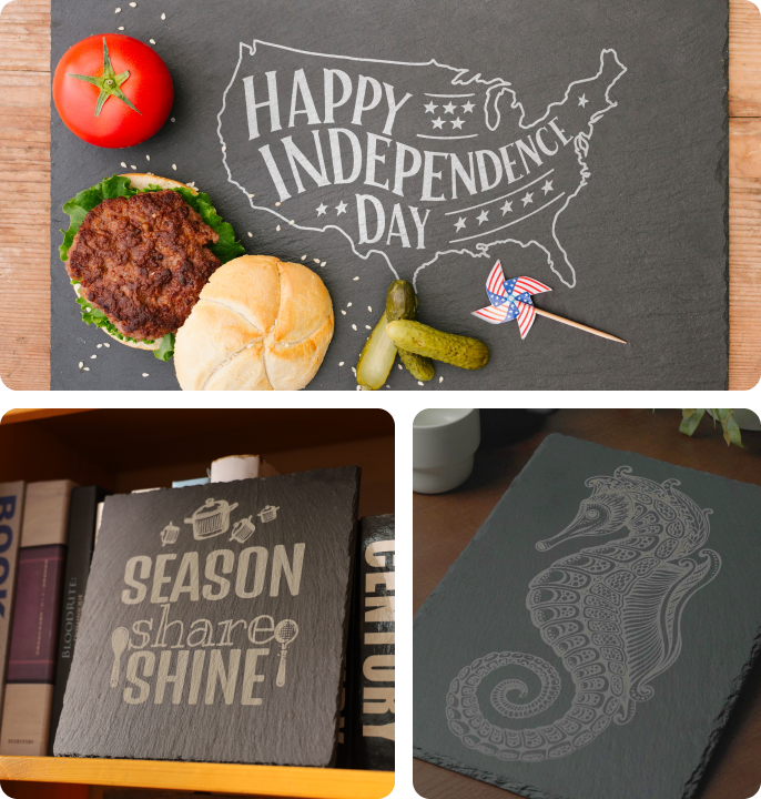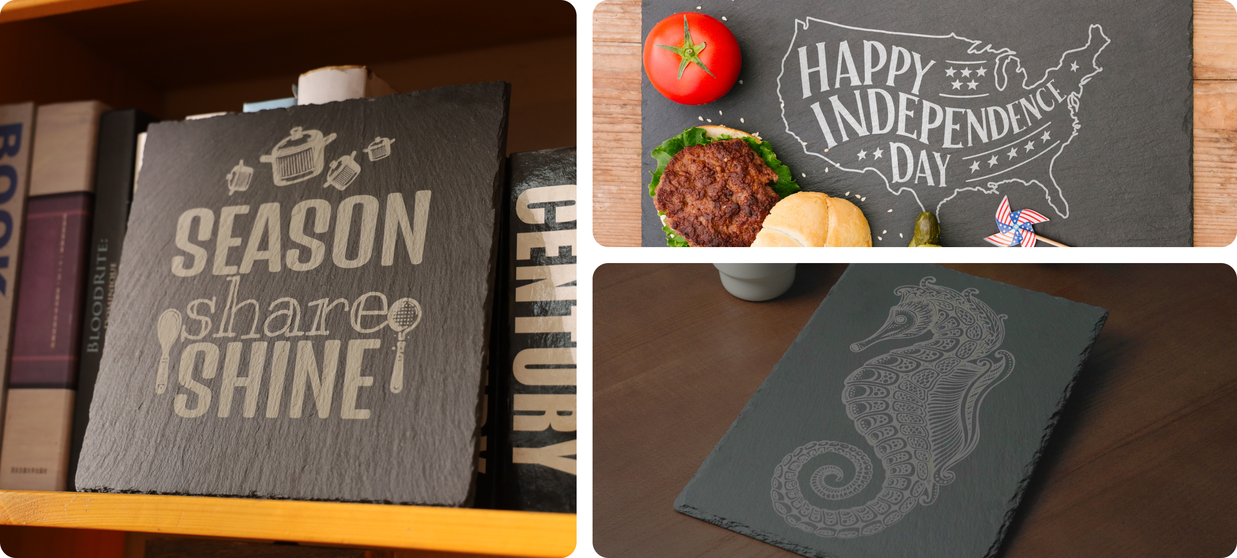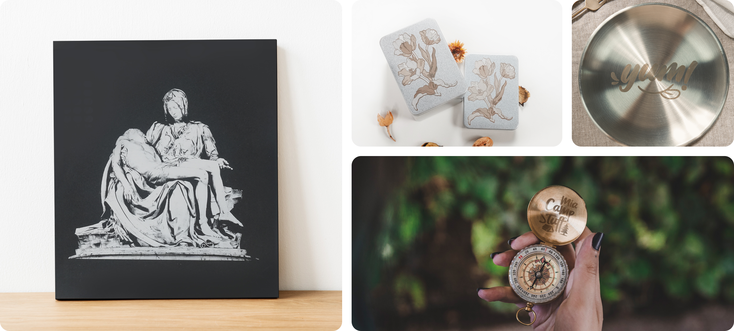 Engravable: Paper, Wood, Leather, MDF, Stainless steel, Some dark opaque acrylic, Bamboo, Fabric, Dark glass, Ceramic, Jade, Marble, Shale, Cement, Brick, Plated metal, Painted metal