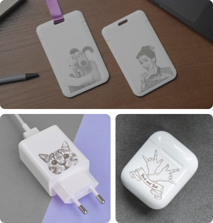 It can engrave on almost all metallic surfaces, as well as most plastic materials like acrylic (plexiglass). If you often work with accessories, jewelry and plastics, you should also get it.