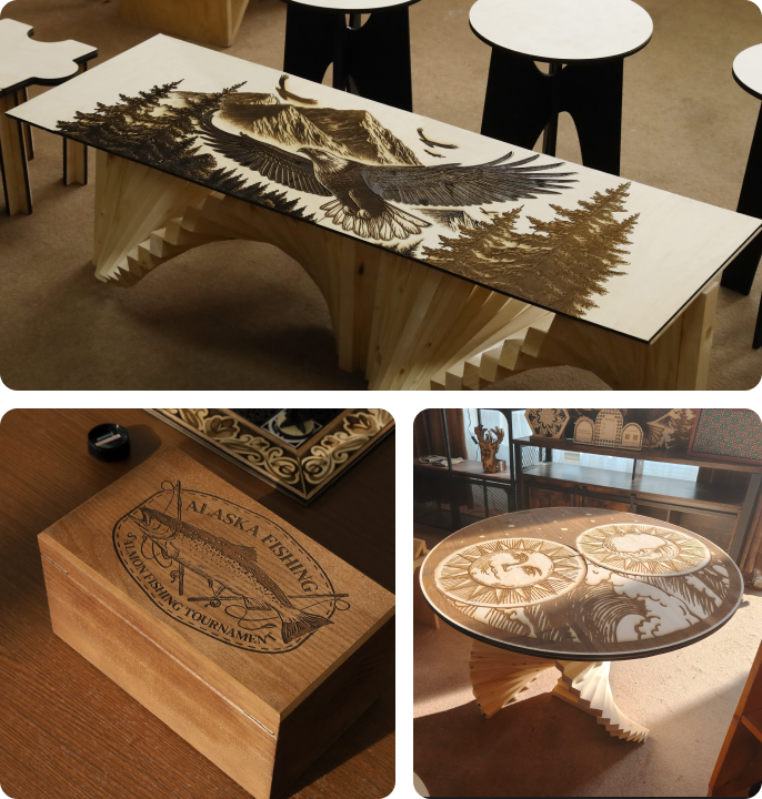 Versatility: A large working area and 137-inch auto pass-through feeder handle big projects. Plus, the Rotary Pro is the easiest-to-use rotary system, and you can easily switch to the 2W IR laser head for metal and plastic engraving, supporting 300+ materials.