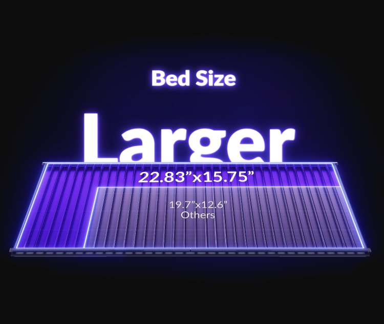- Go Bigger, Go Bolder: Maximize productivity with class-leading 19.7" x 12.6" work area on a 22.83" x 15.75" laser bed, engraving over 200 dog tags in one pass to scale up your business. The same 137" working area is now even wider with the Auto PassThrough Conveyor.