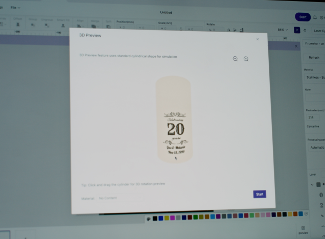 - Easiest Rotary: Vista's patented 90° FlipLaser design makes it the smallest enclosed laser capable of 40oz Stanley tumbler engraving.