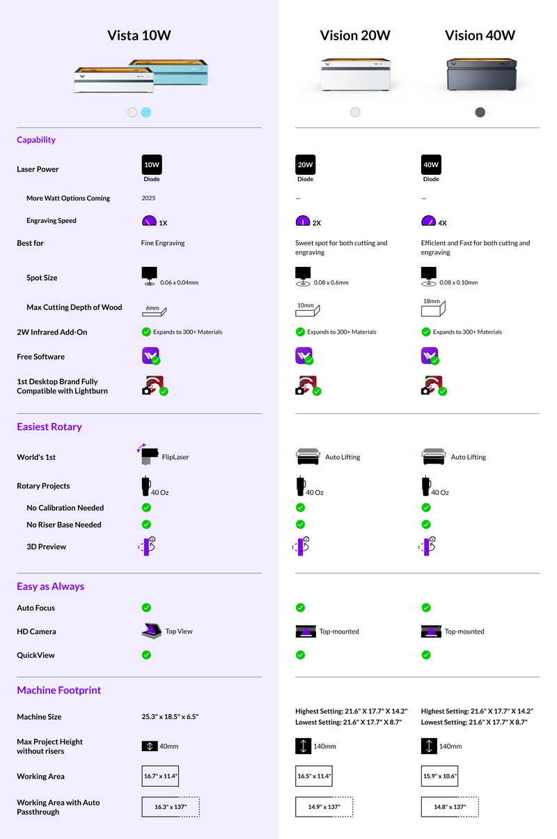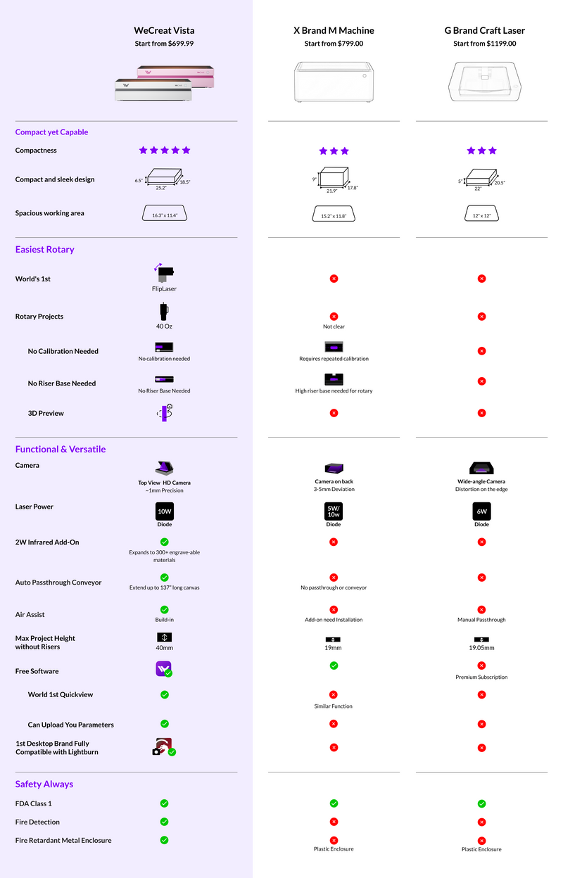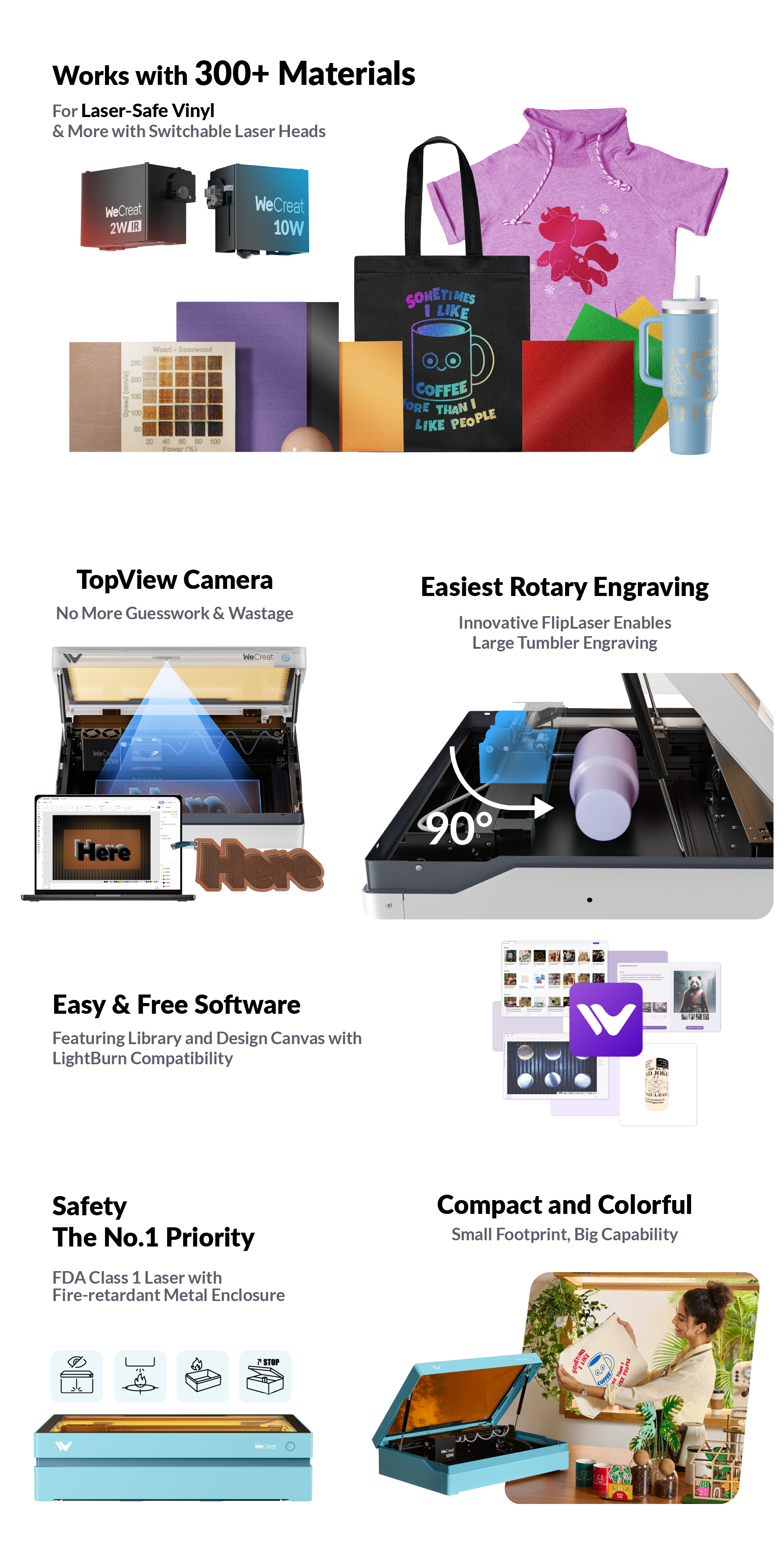 - Easy & Free Software: Vista works seamlessly with LightBurn and our free & easy-to-use WeCreat MakeIt software.