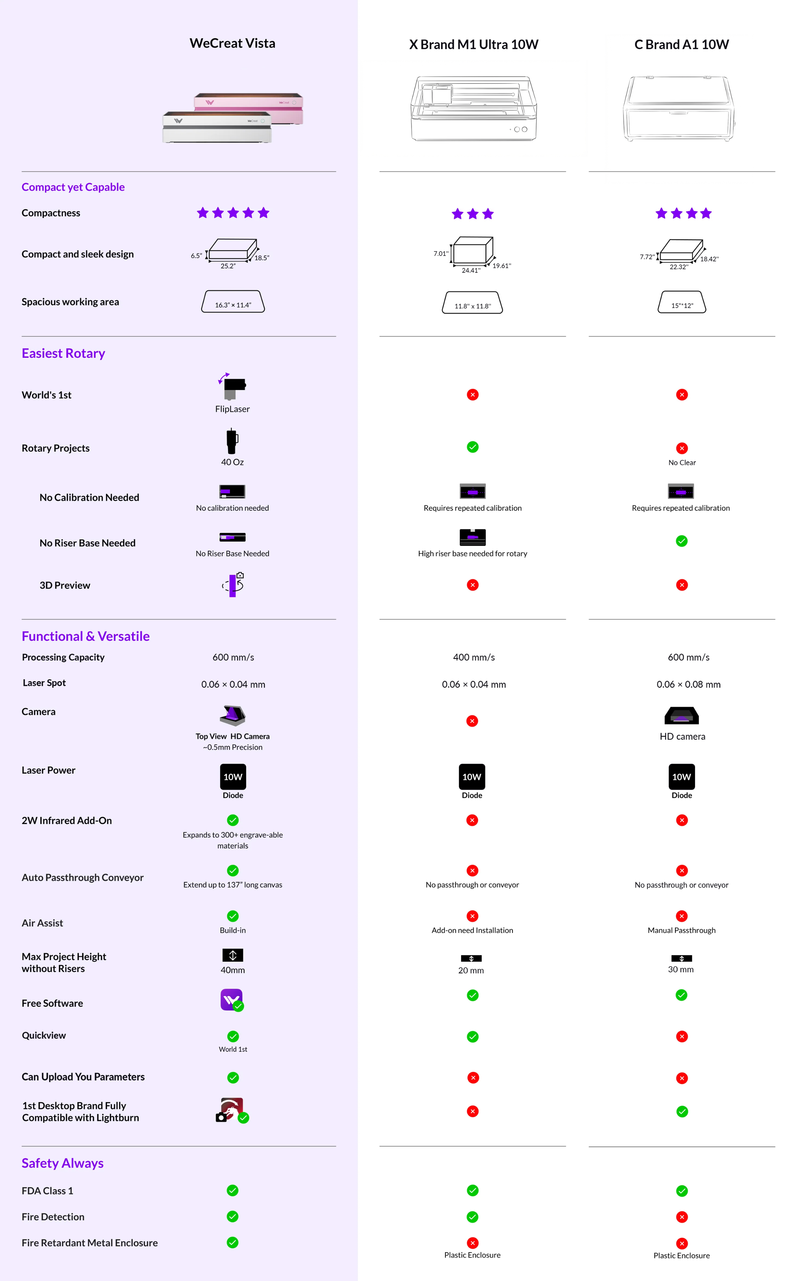• Easy & Free Software: Vista works seamlessly with LightBurn and our free & easy-to-use WeCreat MakeIt software.