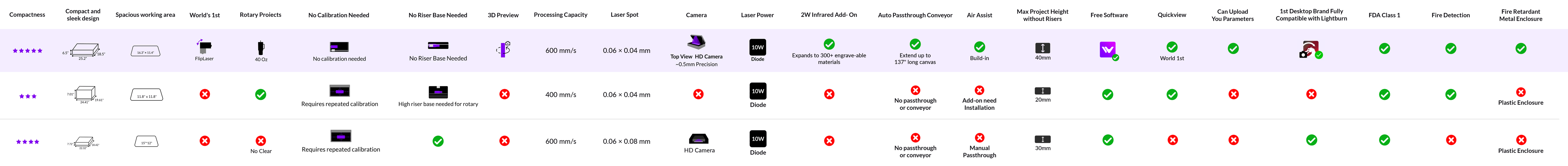• Easiest Rotary: Vista's patented 90° FlipLaser design makes it the smallest enclosed laser capable of 40oz Stanley tumbler engraving.